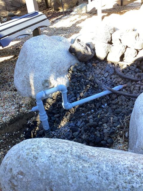 JIG Plumbing will shut off the gas to the home and cut the 3/4” gas stub out for the old BBQ. We will then clean the pipe and install a 3/4” mega press cap close to the wall. The cap will be unpainted. Once the pipe is capped, we will relight the water heater pilot and check functionality. JIG Plumbing will expose the log lighter for the fire pit. We will remove the large rocks, small rocks, and black fire pit rocks to complete expose the log lighter pipe. We will clean the pipe with sand cloth and paint the pipe to add a protective layer to the pipe. This will protect the pipe from further corrosion from the elements. Once the work was completed, the technician relit the gas water heater pilot and set the temperature to “A”