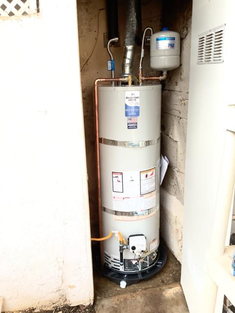Walnut, CA - New 50 gallon Bradford and White water heater with new drain pan, water/gas supplies and shut off valves, new expansion tank, new sediment trap.